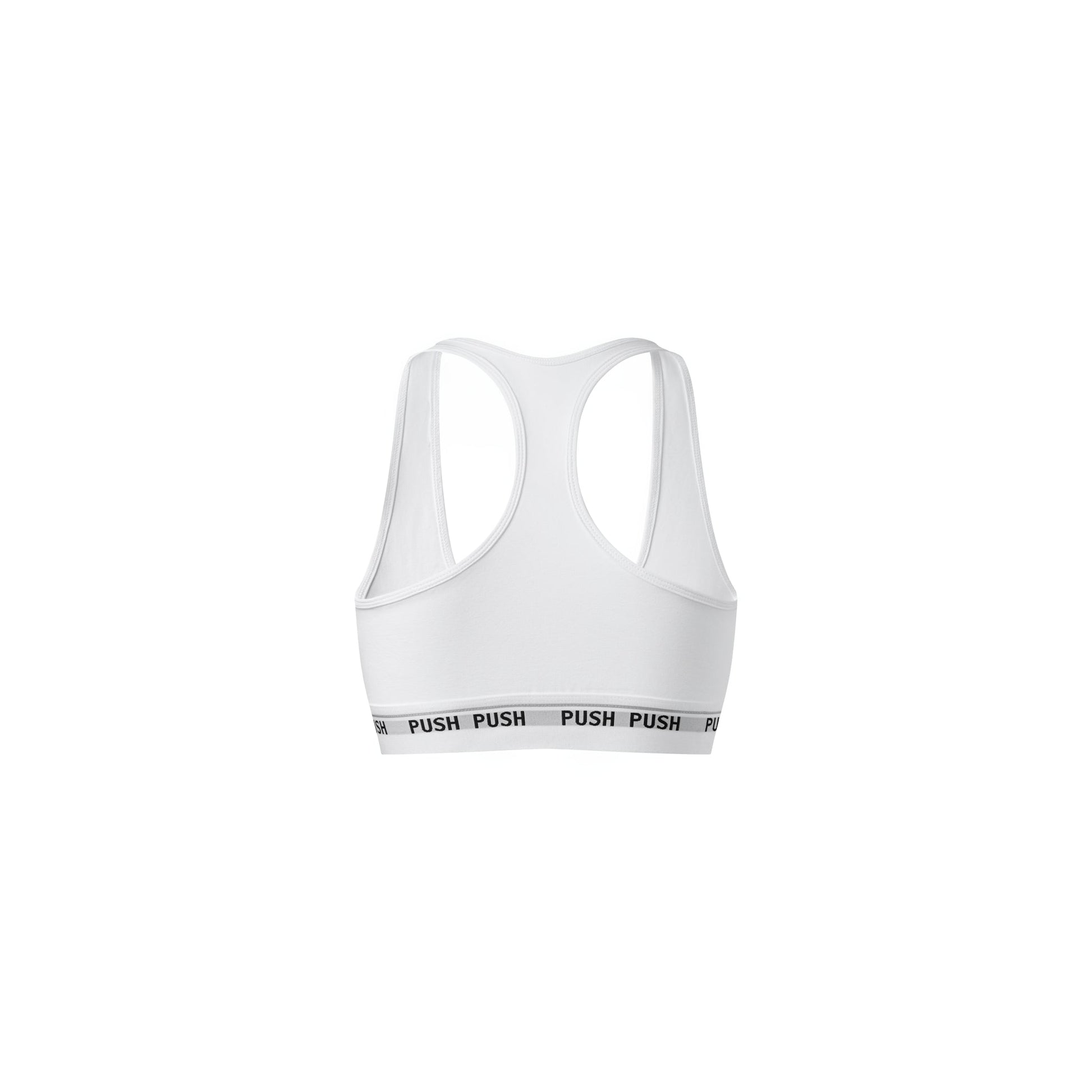 Áo bra top mềm mại, hai lớp, được thiết kế cho sự thoải mái hàng ngày. Làm từ thun sợi tre co giãn, nổi bật với đai thun dệt logo thương hiệu, là món đồ hoàn hảo để mặc phối lớp (layering).