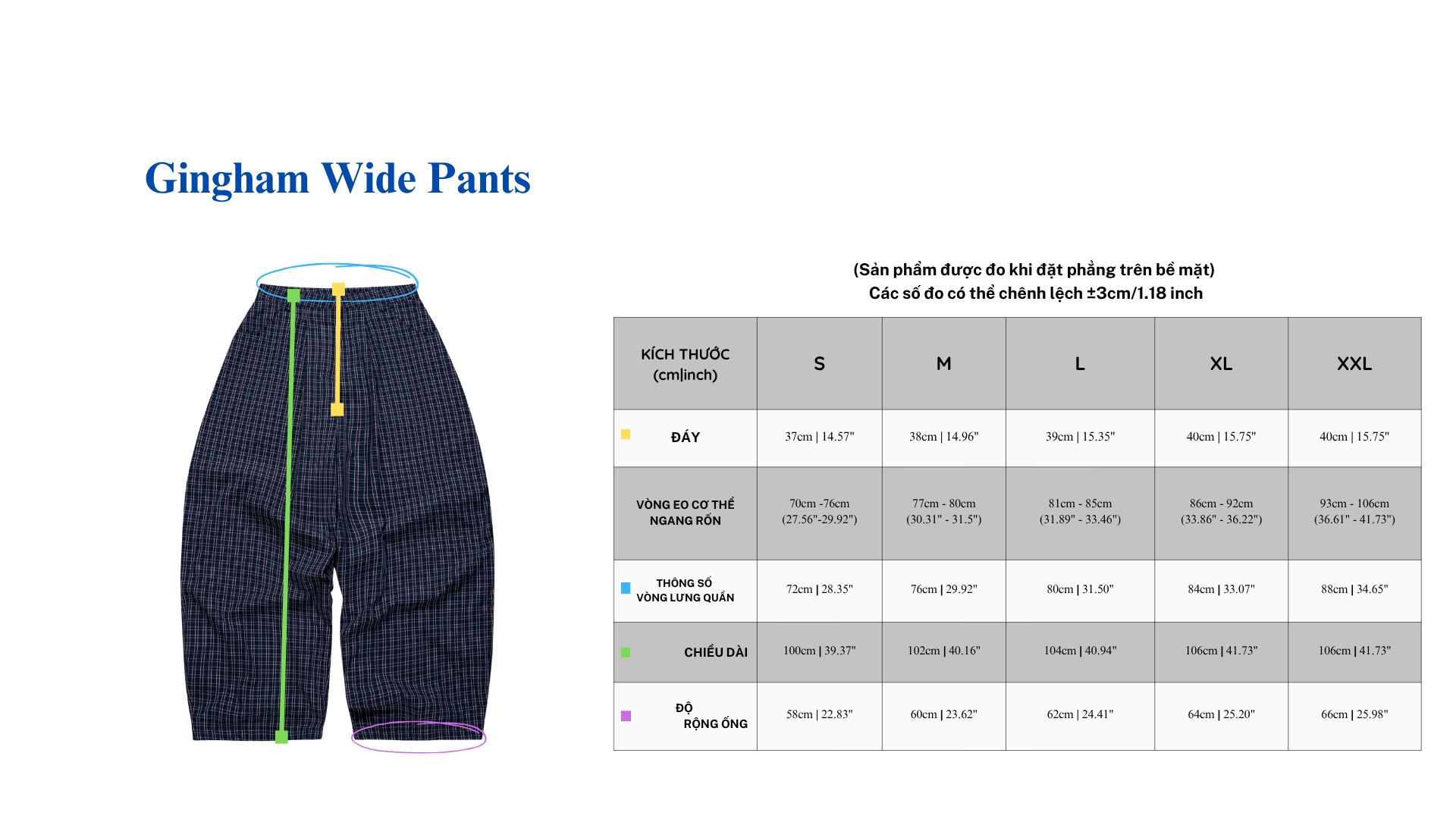 Điểm đặc biệt của Gingham Wide Pants là form ống rộng, đứng dáng đầy ấn tượng. Sử dụng 100% cotton không co giãn và kỹ thuật ép keo chuyên biệt, chiếc quần luôn giữ được phom dáng cứng cáp, rõ nét.
