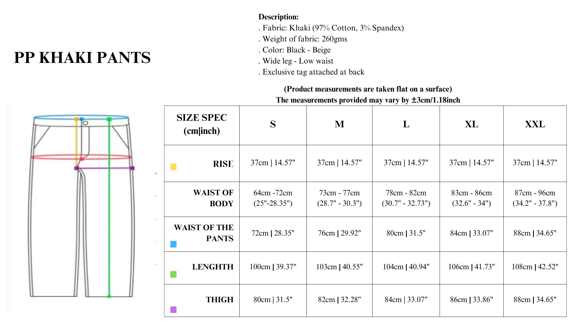 - Chất liệu: Vải kaki (97% Cotton, 3% Spandex)